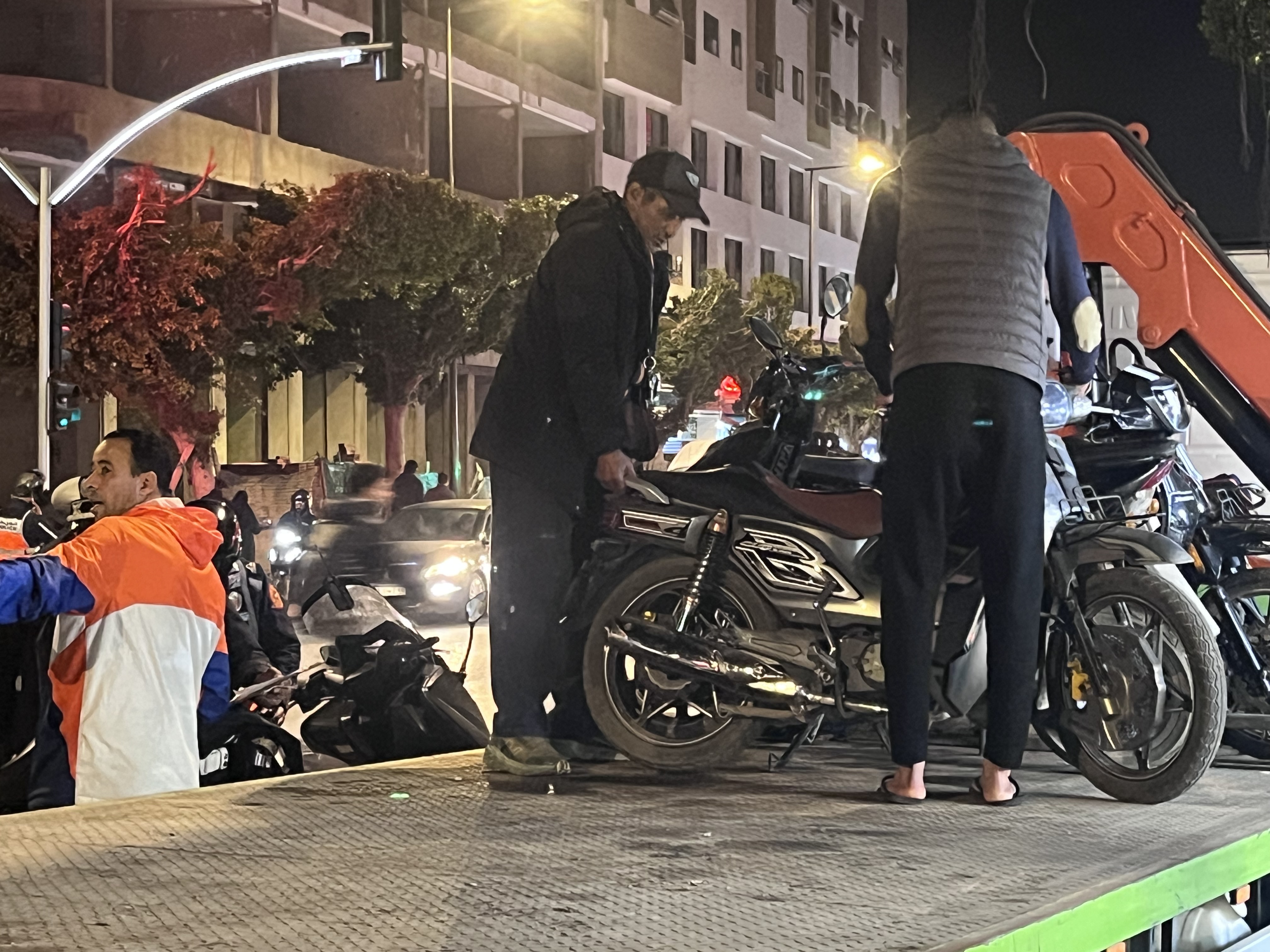 وعرفت الحملة مشاركة مسؤولين أمنيين بارزين، يتقدمهم نائب والي الأمن، ورئيس المنطقة الأمنية، ورئيس الدائرة الأمنية الثانية، ورئيس الدائرة الأمنية الثالثة، إلى جانب الفرقة المكلفة بالسير والجولان، وعناصر الأمن الدراجين، في تنسيق ميداني يعكس جدية المقاربة المعتمدة. كما تم تسخير مقطورات خاصة لنقل الدراجات النارية المحجوزة، حيث جرى حجز عدد منها بسبب مخالفات تتعلق بعدم احترام قانون السير أو التورط في سياقات استعراضية خطيرة.